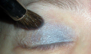 Summer is when most women want to keep their make-up light and minimal. But light doesn't have to mean bare eyes. Personally if I don't wear eye make-up you can barely tell I have eye lashes. I'm just happier with eye make-up on. But in the summer I tend to wear lighter or brighter colors than in winter. Recently I wanted to mix two colors that I don't usually wear. I got out my eyeshadows and set them on the nightstand, moving one beside the other to see which ones looked good together. I decided to use gray and blue. I used a light blue and grey for a day-time look.